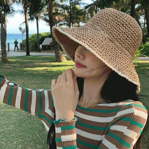 유유라키 여름 와이어 밀짚 라탄 버킷햇 모자