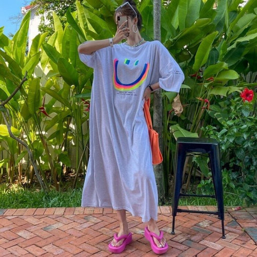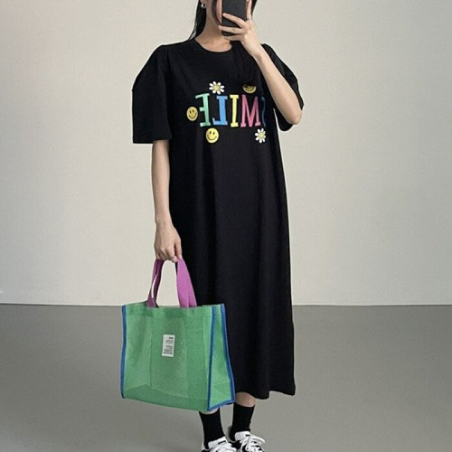 [에이치플러스몰]여름 반팔 여자 빅 원피스 귀여운 포인트 스마일 롱