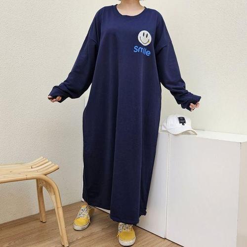[에이치플러스몰]루즈핏 메롱스마일 롱원피스 ob24310