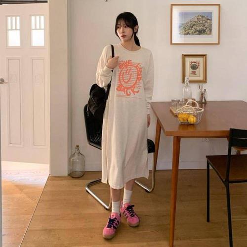 [모노무드]모노무드 루즈핏 에그스마일 롱원피스 ob24308