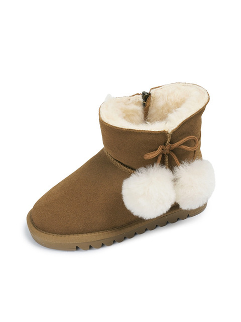 어린이용 진짜 소가죽 스노우 부츠, 부드러운 따뜻한 코튼 신발, 봉제 스웨이드 부츠, 공주 레트로 부츠, 남아 및 여아, 겨울