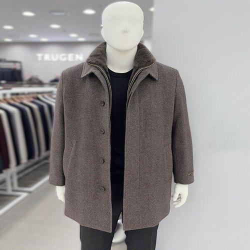 [트루젠]남자 울50% 캐시미어50% 토끼털 밍크 카라 분리형 겨울 하프 싱글 집업반코트 총장 84cm
