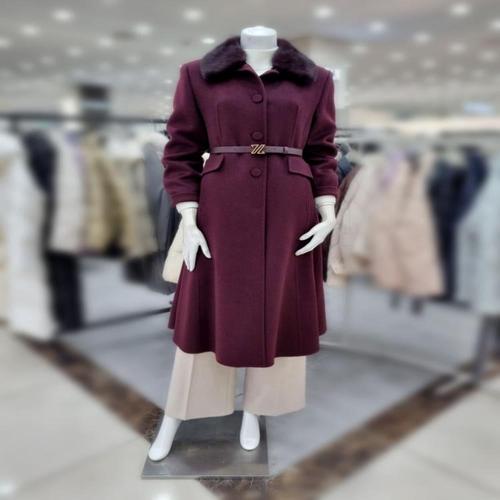 [롯데백화점]벨리시앙 탈부착 밍크 스탠카라 캐시미어 블렌디드 롱코트 LC3405