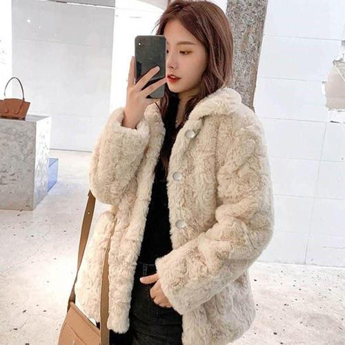 CBHV 여성 밍크 코트 따뜻한 뽀글이 아우터 옷깃 퍼자켓