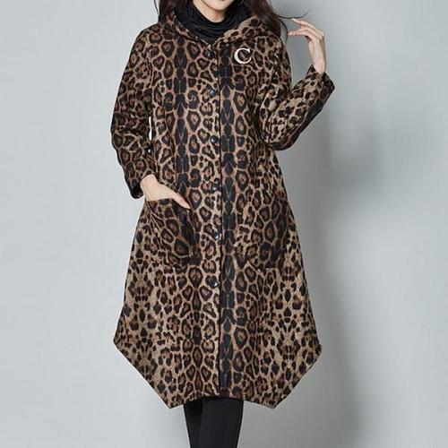[셀러허브_여성트랜드패션]까르죠아 호피 겨울 후드 코트 롱 안감 털 밍크 기모