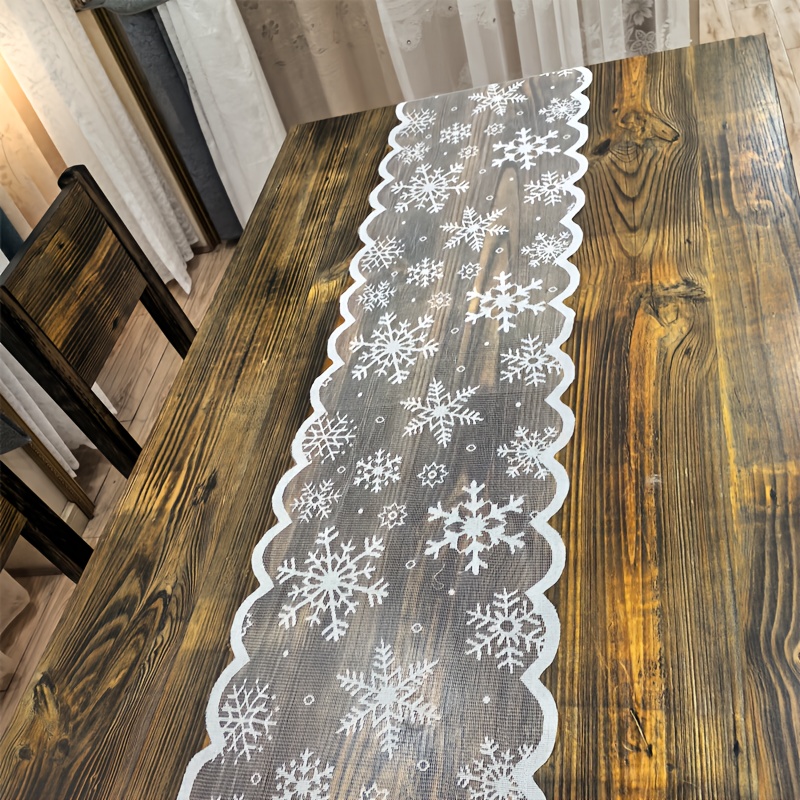 TEMU 싱글 팩 화이트 퓨어 스노우플레이크 레이스 패턴 테이블 플래그 고급 분위기 식탁 피아노 수납 캐비닛 미화용 테이블 플래그, 휴일 모임 및 저녁식사 장식 리셉션 데코에 적합