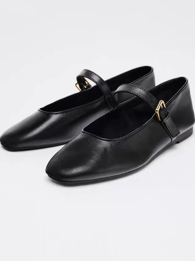 ZAKQ2025 여름 신상 여성 플랫 메리 제인 발레 슈즈 스퀘어 토 플랫 바닥 패션 싱글 슈즈 PU 가죽 낮은 굽
