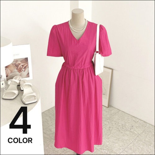 허니제이 / 디팽 바스락 포켓 스트링 반팔 롱 원피스 (4color)