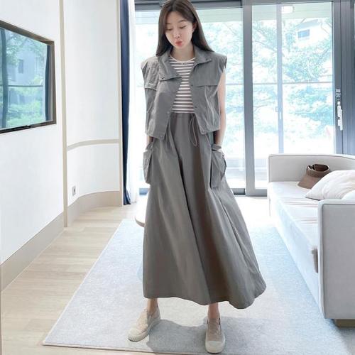 [핑크시슬리] SET/소피 바스락 하이넥 조끼+맥시 원피스세트