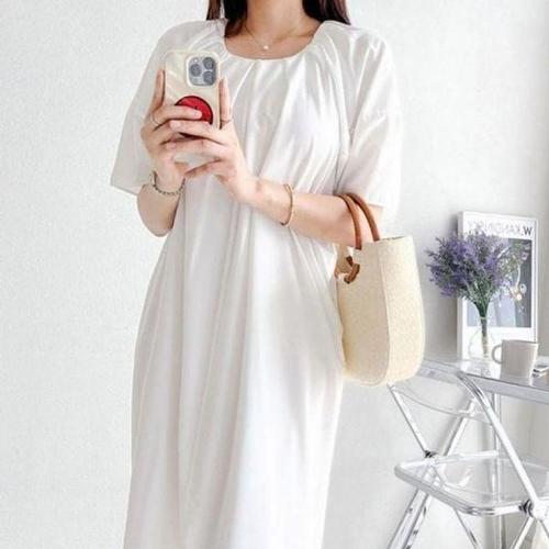 [에이치플러스몰]여성 베이직 여름 롱 바스락 올데이 반팔 퍼프 원피스