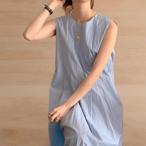 [신상오픈런]여성 민소매 플레어 롱 원피스 라운드넥 바스락 소재