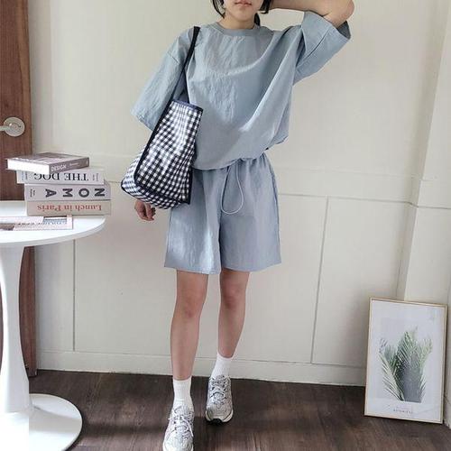 [보리맘]바스락 원단 반팔티+반바지 셋업 트레이닝복 세트 여름 여행
