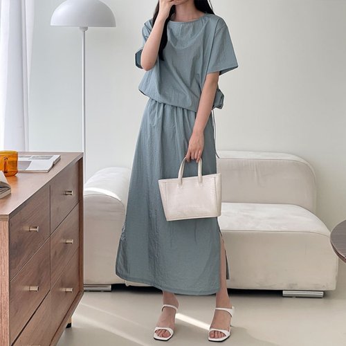 H스타일(DK)온리바스락롱스컷세트 여름 여성 반팔 트레이닝복세트 츄리닝셋트 스커트셋업