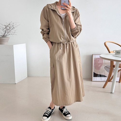 H스타일(SET)바스락바람막이후드스커트세트 봄 여름 여성 긴팔 후드 트레이닝복세트 츄리닝셋트