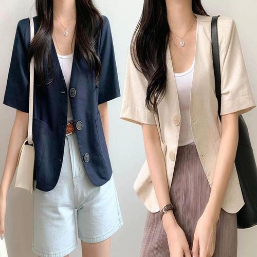 [라일리여성의류] Rly 반팔 여름 브이넥 하객룩 노카라 단아한 마이 자