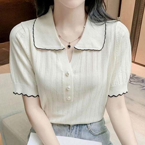 겨울 니트 봄 시스루 반팔 카라 티 여자 스웨터 골지 여름 WFKZKMB