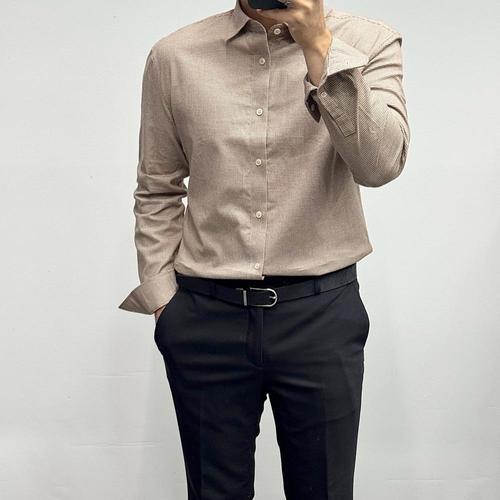 [바쏘옴므]면스판 남성 연브라운 가을겨울셔츠남방ABRWSY3TT36