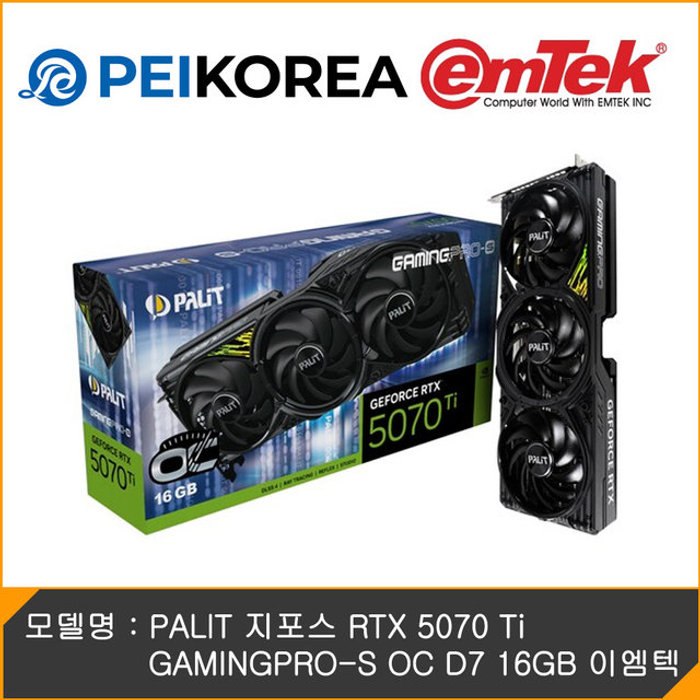 이엠텍 [바이오하자드 게임코드 증정][PEIKOREA] PALIT 지포스 RTX 5070 Ti GAMINGPRO-S OC D7 16GB 이엠텍
