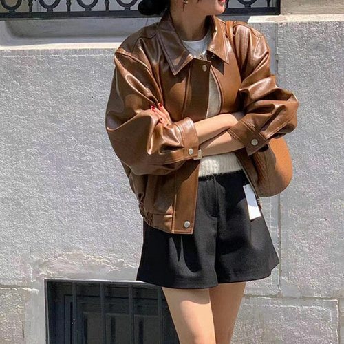 슈팅스타 / 바이크코어룩 간절기 봄 아우터 페이크 가죽자켓