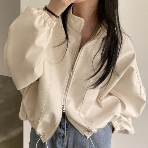 슈팅스타 / 허리스트링 볼륨 라이더 바이크코어룩 인조 가죽자켓
