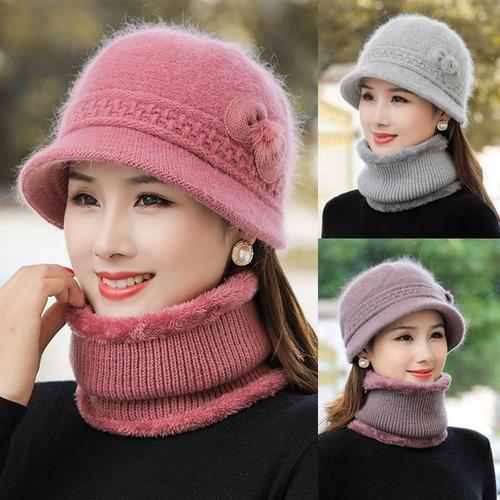 여성 겨울모자 방한 방울털 니트 캡비니 넥워머 세트