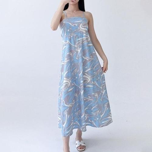 여성 바캉스원피스 패턴 바캉스 하객룩 여름 민소매 롱 원피스 (WFJSOAY)