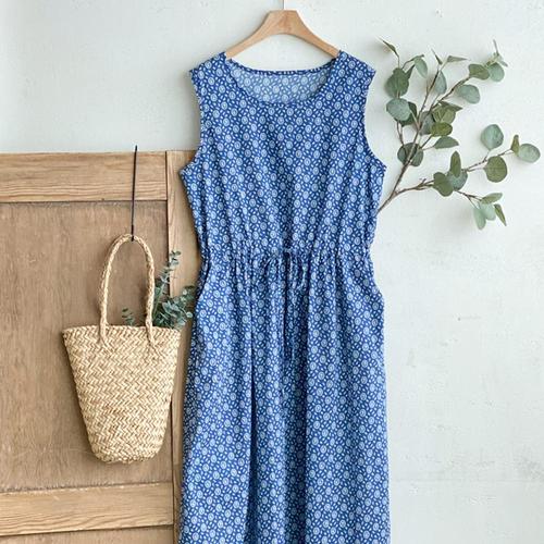 여성 허리조절 민소매 바캉스 롱원피스 BONG-WDR-4647-블루