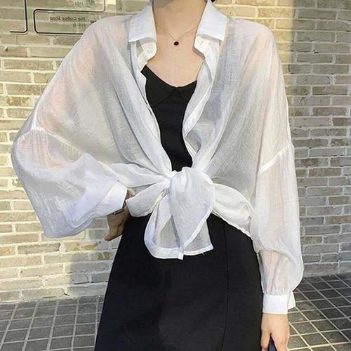 시스루 여성 3컬러 긴팔 셔츠 속비침 남방 레이어드 블라우스 여름 바캉스 셔츠