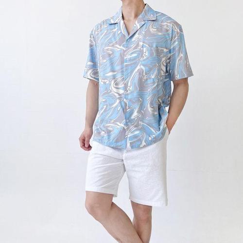 남성 여름 해변용 캐주얼 반팔 셔츠 반바지 비치룩 바캉스웨어 WFLME4U