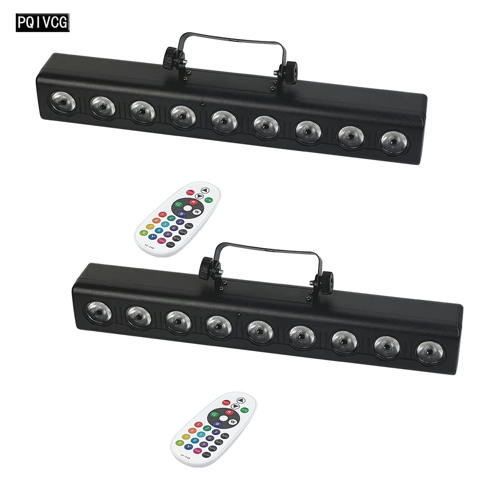 2 개/대 원격 9x12w RGBW 4in1 긴 스트립 LED 벽 세탁기 무대 염색 조명 DJ 바 스트로브 라이트