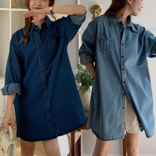 [엄지척]데님미디셔츠원피스 여자데님셔츠 박스핏데님셔츠_19959336_667501