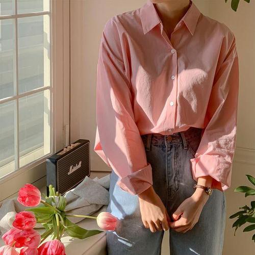 [다잇템]여자 박스 면100 무지컬러 여유핏 셔츠 셔츠