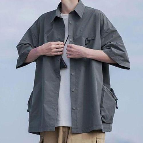 [에이치플러스몰]남성 스트링포켓 포인트장식 박스핏 반팔셔츠 썸머룩