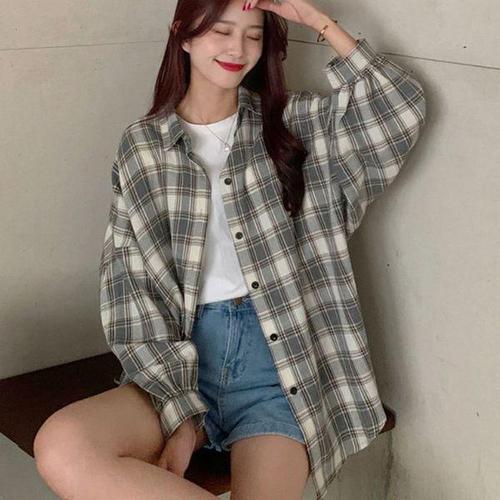 MOMOKA 솔리드체크셔츠 여성셔츠 오버핏셔츠 빅사이즈 루즈핏
