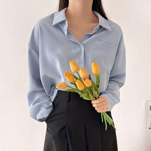 루비루 RB3120 여성 카라 베이직 오버핏 긴팔 셔츠