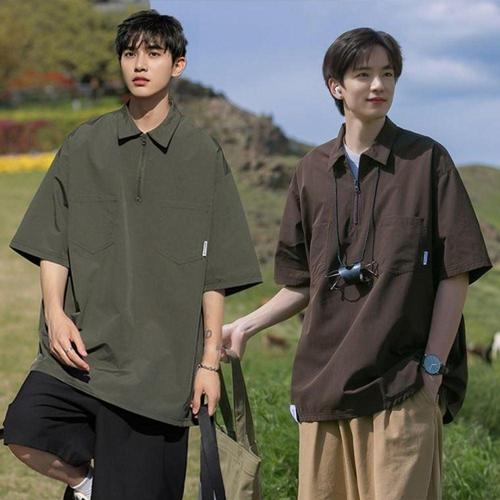 남자 반팔아노락 오버핏 카라 반팔 티셔츠 박스티 포켓 반팔티 WFJ2B6I