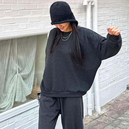 [옷자락] 여자 털안감티셔츠 박스핏 무채색 심플 겨울 맨투맨