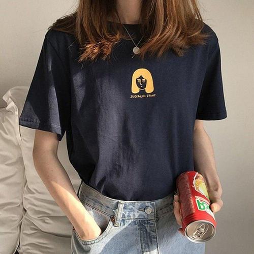 여성용 코튼 프린트 반팔 박스핏 캐주얼 티셔츠