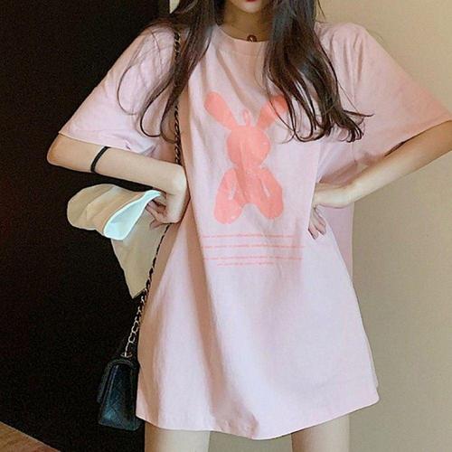 [끌레아]맨투맨 상의 프린팅 후드티 래빗 여성롱티 간절기 박스핏