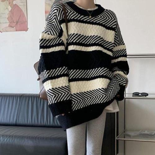 박스핏 오버핏 라운드 스트라이프 니트티 니트 WFLX6BK