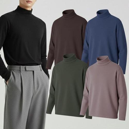 1+1세트 남성용 데일리 무지 고탄력 캐시미어 반목 목폴라 니트 긴팔티 Sevenmoon