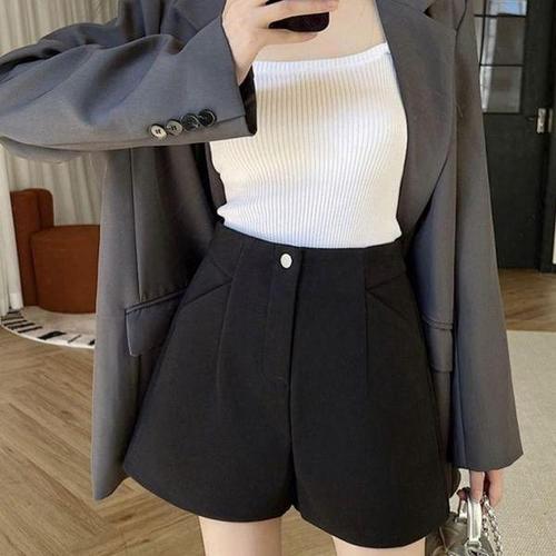 [셀러허브_여성트랜드패션]ONM 여성 블랙 하이웨스트 출근룩 정장룩 반바지 숏팬