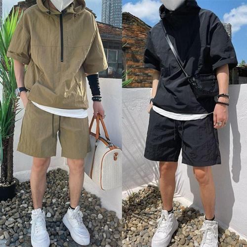캐주얼 베이직 남자 아노락 반팔 반바지 세트