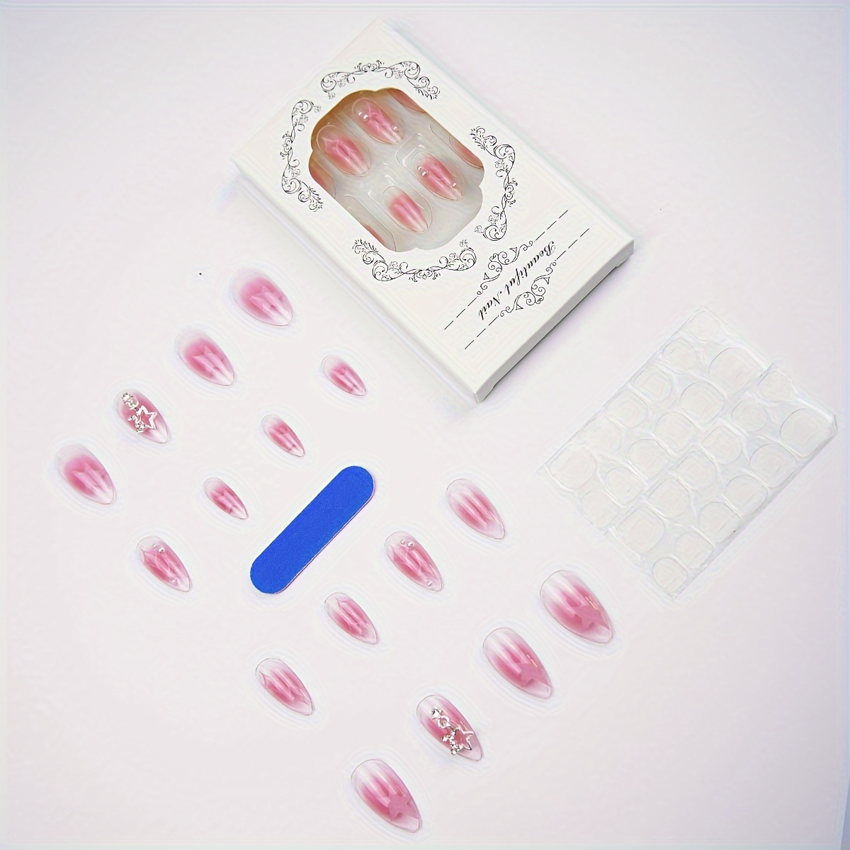 TEMU 24개입 프린트 & 3D 리본 디자인 아몬드형 프레스온 네일 - 포인트 프렌치 팁 광택 인조네일, 여성용 손발 네일, 데일리웨어, 파티, 웨딩, 쉬운 적용|네일팁