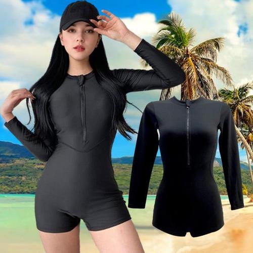 여자 해변 긴팔 반집업 래쉬가드 수영복