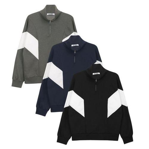 [모로엠]남성 캐주얼 기모안감 배색 반집업 맨투맨 5C-TSK-Q050