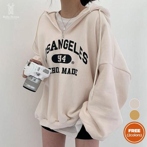 벨라도나 여성 가을 레터링 반집업 오버핏 후드티셔츠 루즈핏