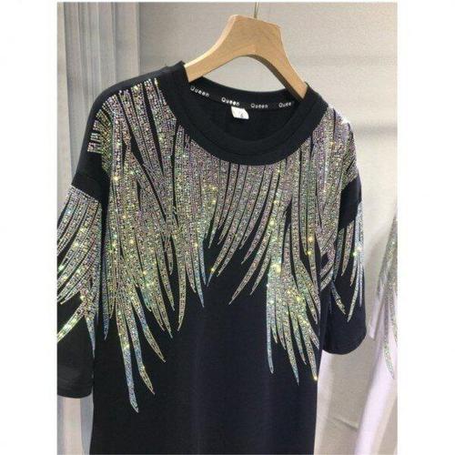 [끌레아]빅사이즈 큐빅날개 빤짝이 티셔츠 핫피스 댄스 무대 공연 SH438