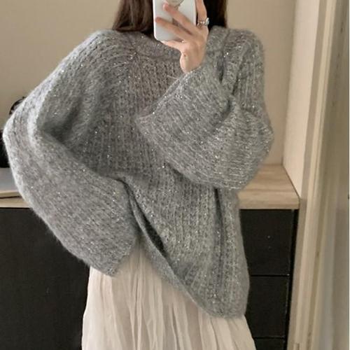 [르뚜앙]맹호 봄 가을 겨울 반짝이 루즈핏 리본 니트 데일리룩 하객룩 화이트 그레이 빅사이즈 니트