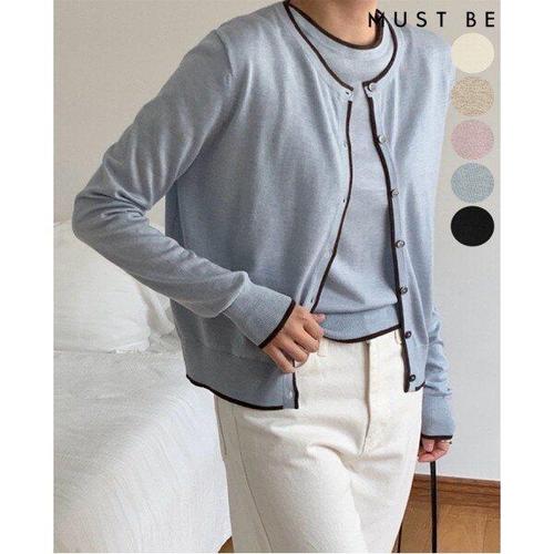[모노무드]모노무드 여성 여름 시원한 컬러감 스트라이프 숄 러블리무드 여름 반팔 니트 세트